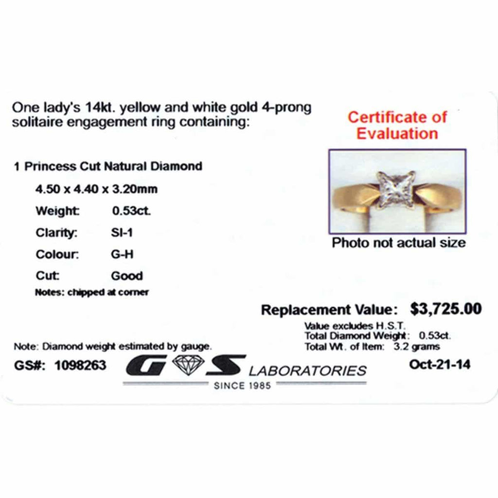 SKU CEJ00002944Centered with a .53 carat princess cut diamond solitaire in a 14kt yellow and white gold setting.